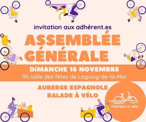 Cette année, après Plouézec en 2023 et Plourivo en 2024, l’assemblée générale ordinaire de Pays d’Paimpol A Vélo se tiendra à la salle des fêtes de Loguivy de la mer (commune de Ploubazlanec) le dimanche 16 novembre 2025. A partir de 10h30, vous pouvez venir échanger, renouveler votre adhésion ou adhérer pour la première fois …